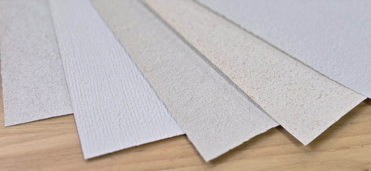 全ての基本となる白無地壁紙、ひとつの見本帳のなかでも20種類以上あります。