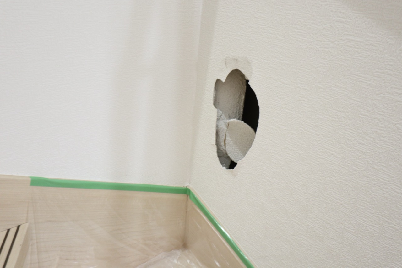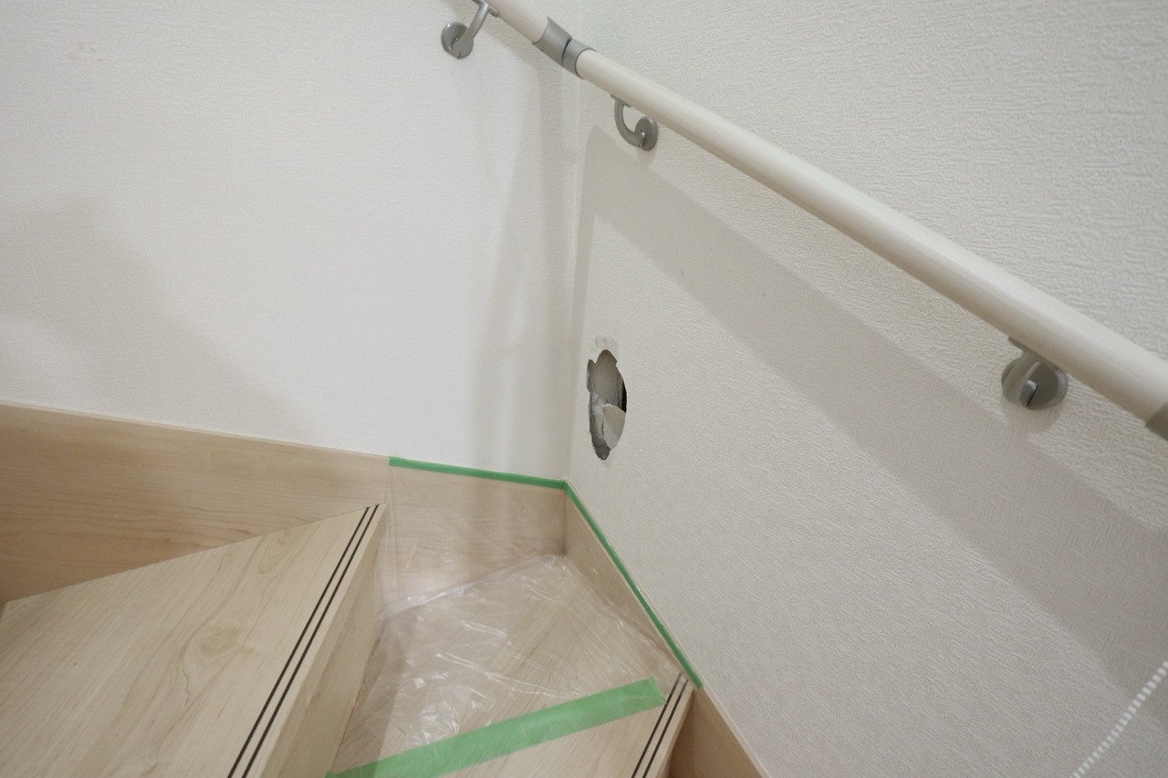 「階段を降りている途中で滑ってしまい、穴が空いてしまった」とのご連絡をいただきました。