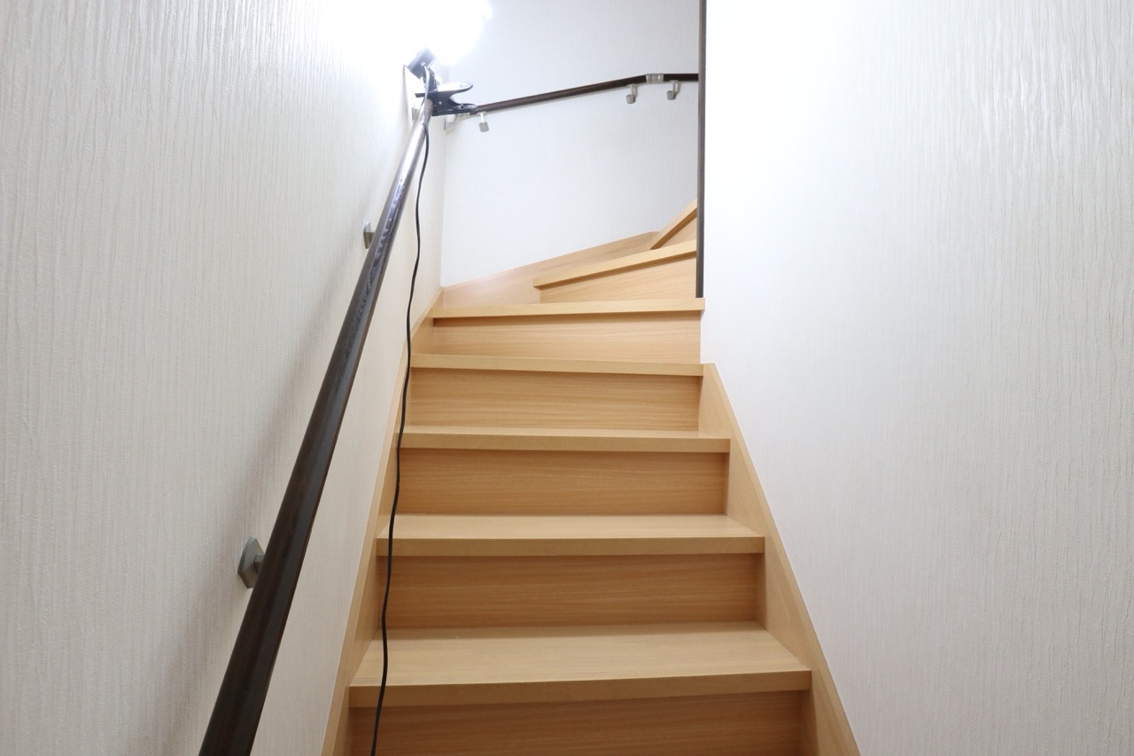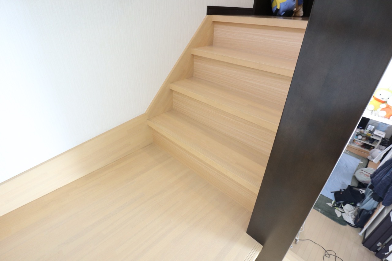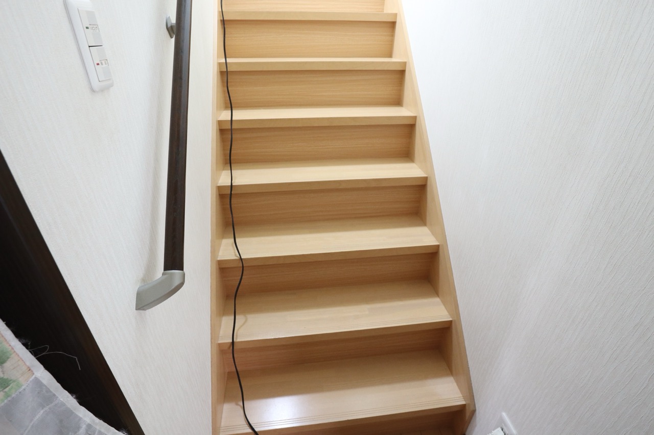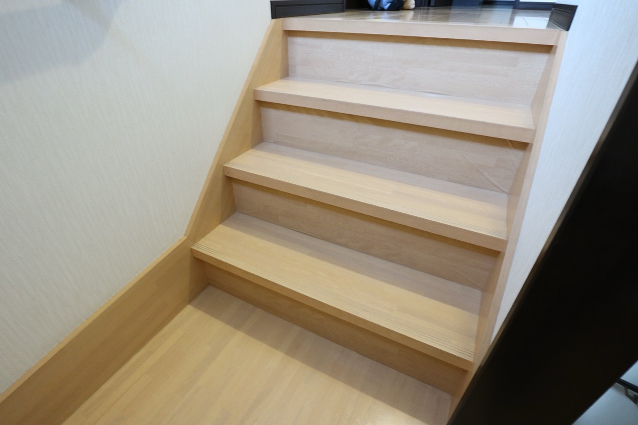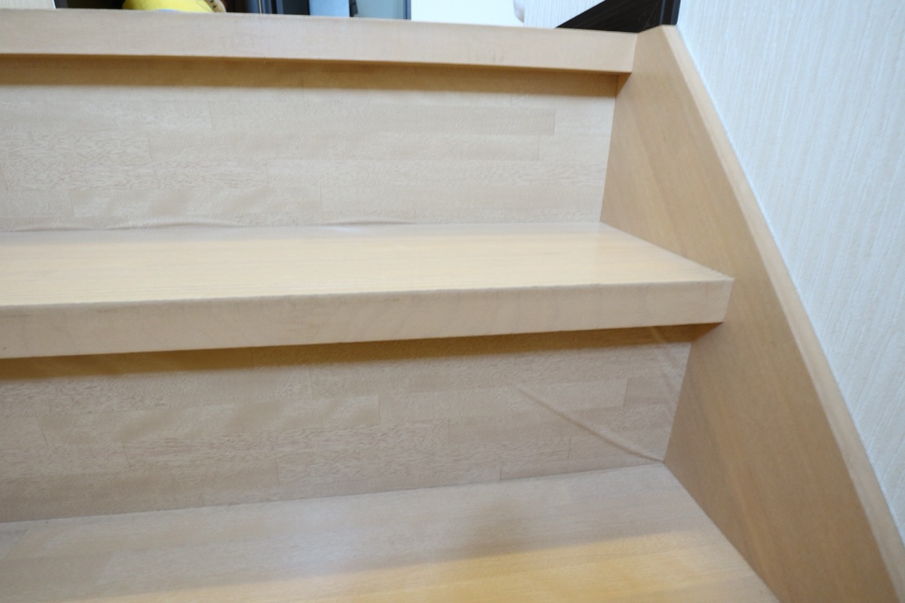 階段の木目シートにシワが寄っているので張り替えてほしいとのご相談をいただきました。
