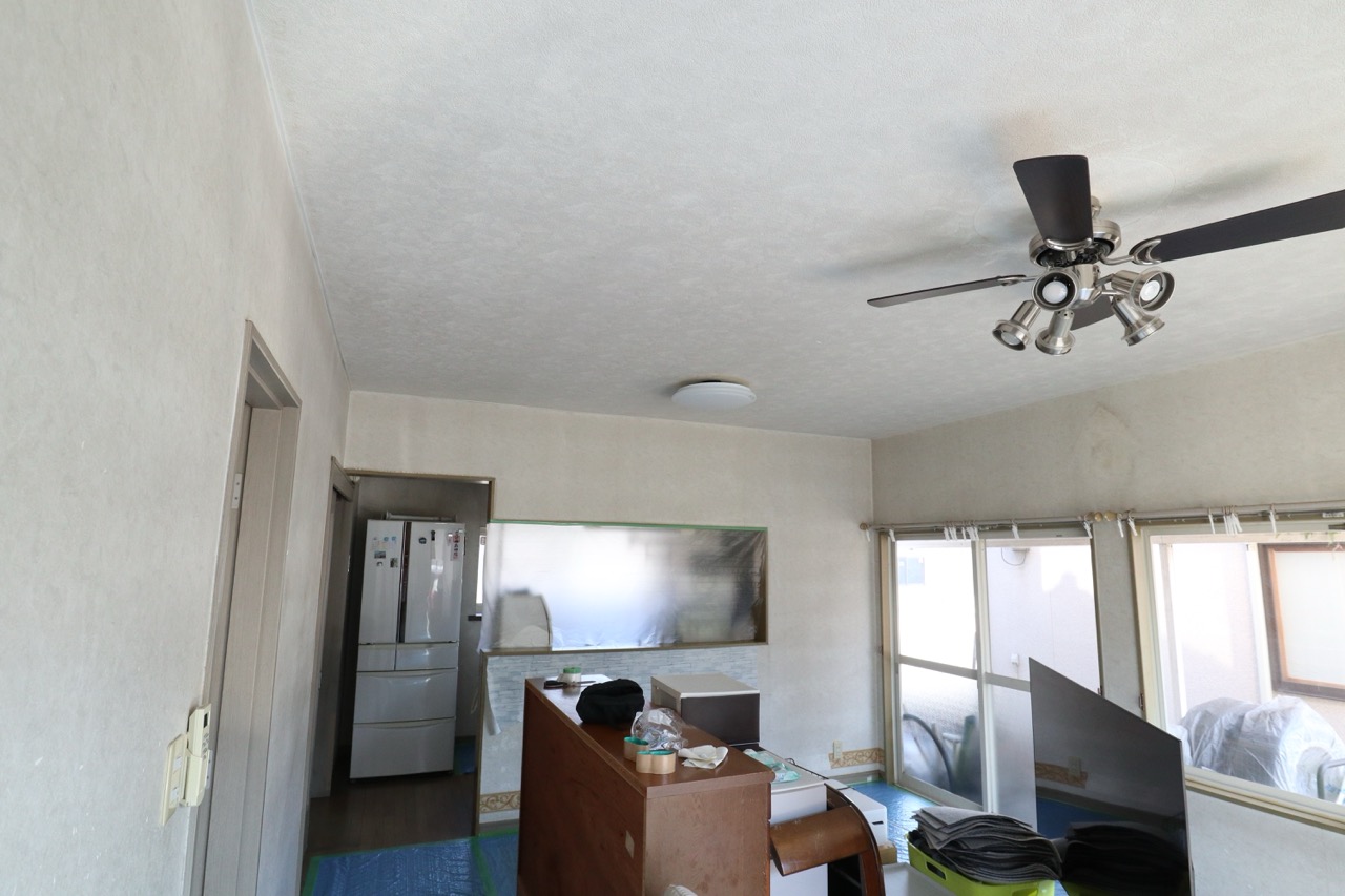 どちらも天井は既存のままだったため、それぞれ天井クロスに合うデザインをご提案させていただきました。火災保険会社さまから必要なお見積書についていくつか指示いただきましたのでお客さまと連携をとりながら柔軟に見積もり資料をご用意させていただきました。