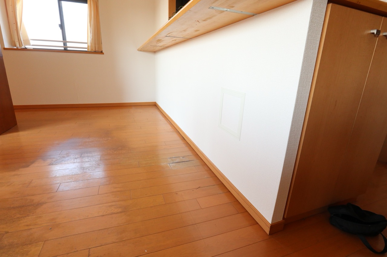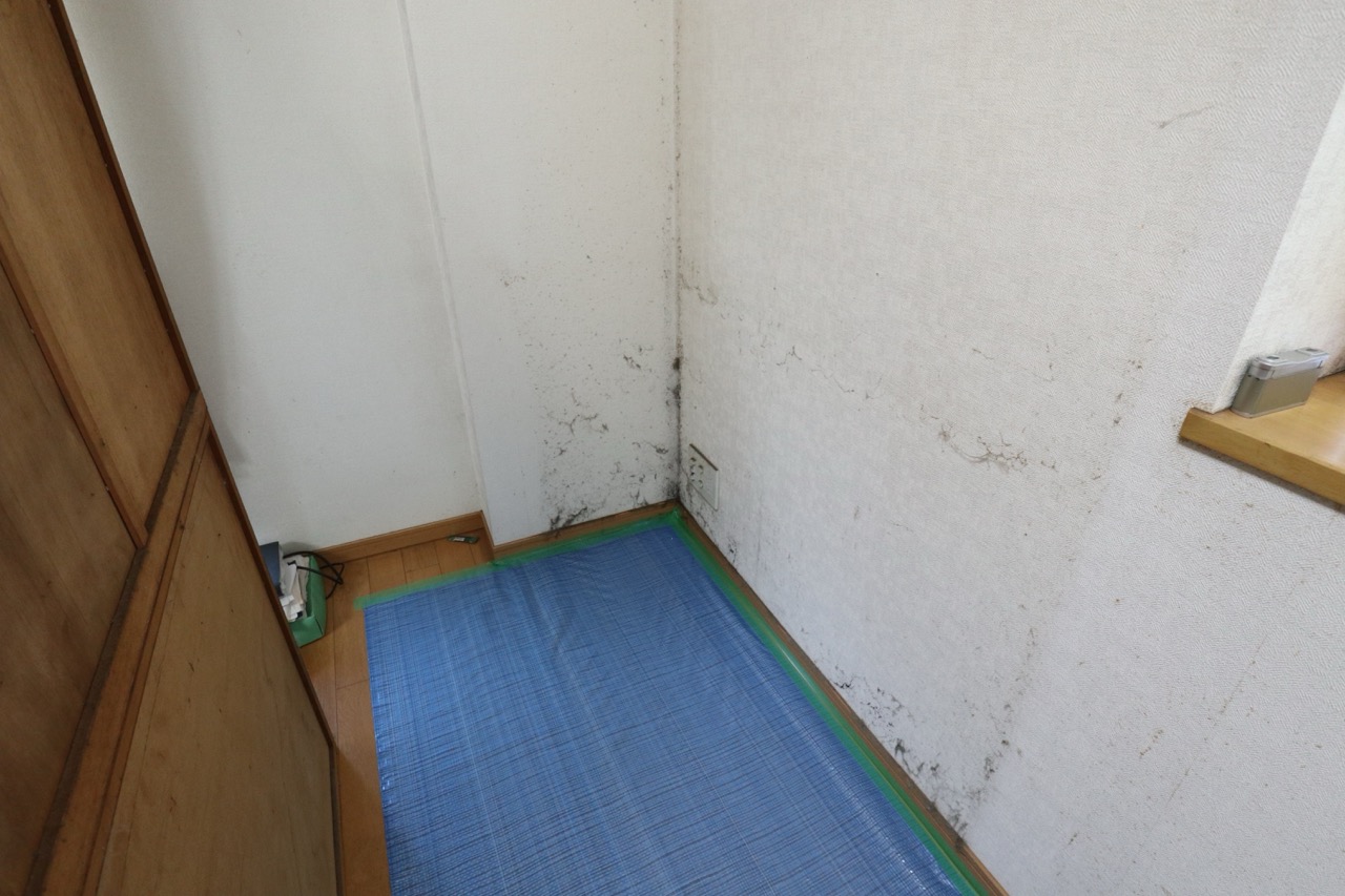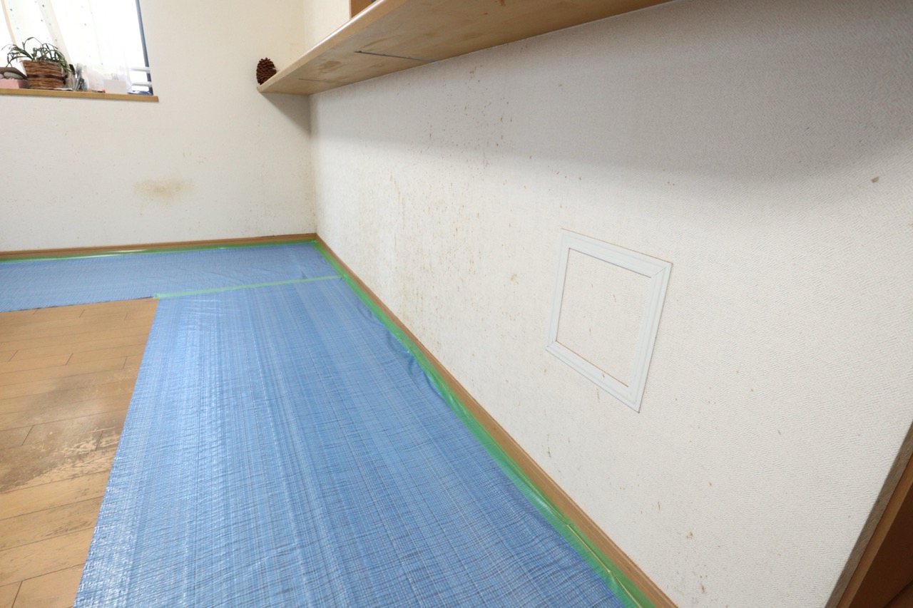 購入検討者からの値引き交渉を少なくするために最低限汚れているところだけでも綺麗にしておきたいとのことで、洋室1室とリビングの一角を張り替えています。