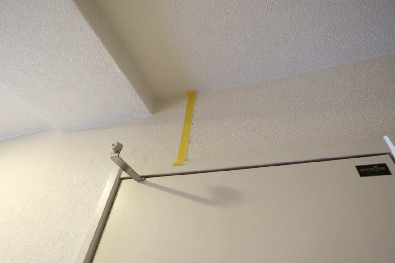 ドア開閉の振動によるヒビ割れ、クロスを張る時に無理なテンションを加えたことでできるシワがありました。