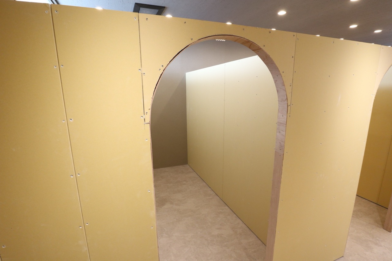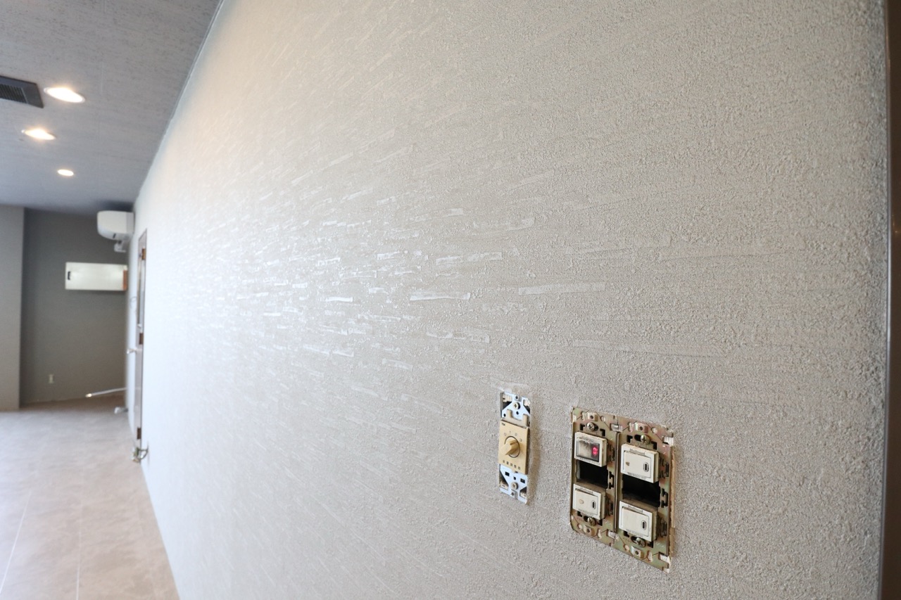 その後大工さんが間仕切り壁をつくって、間仕切り壁へのクロス施工とソフト巾木を施工しました。