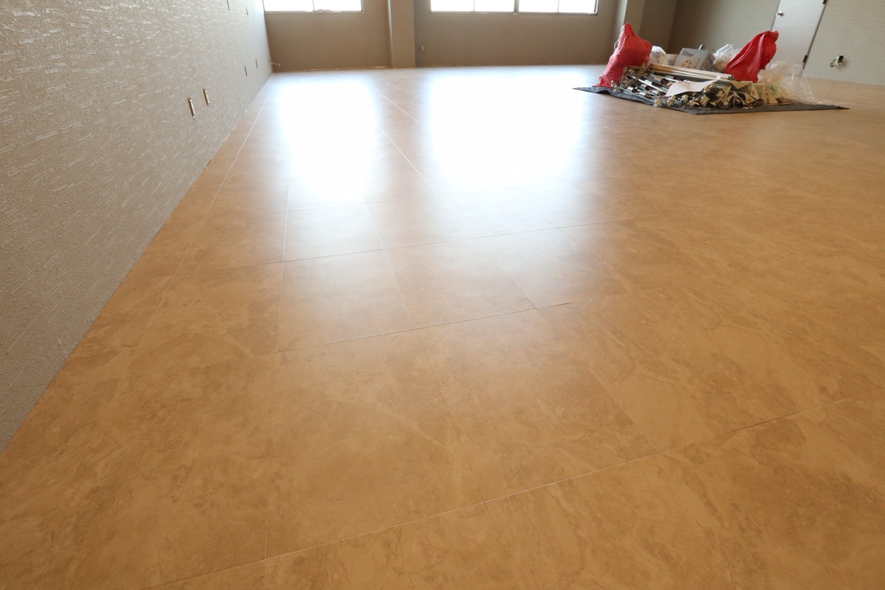 大工さんより先行して、まずは外周面のクロス張り替えと床にフロアタイルを施工しています。