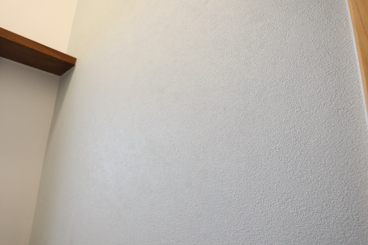 正方形の8帖部屋で、全体を白くなりすぎないようにライトアイボリーカラーのベースクロスでまとめ