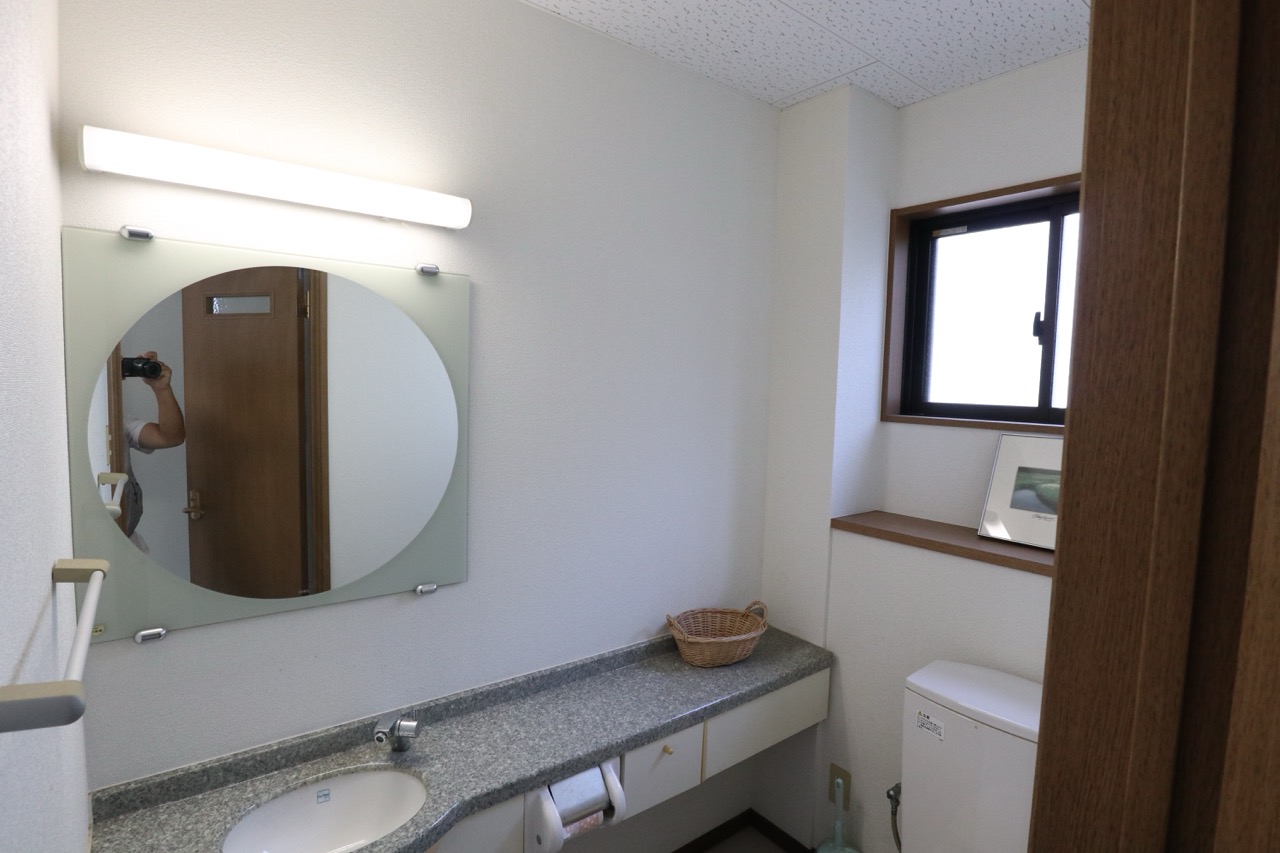 トイレの手洗いカウンターも取り外せなかったため、くり抜くようにして見える部分を全て張り替えています。