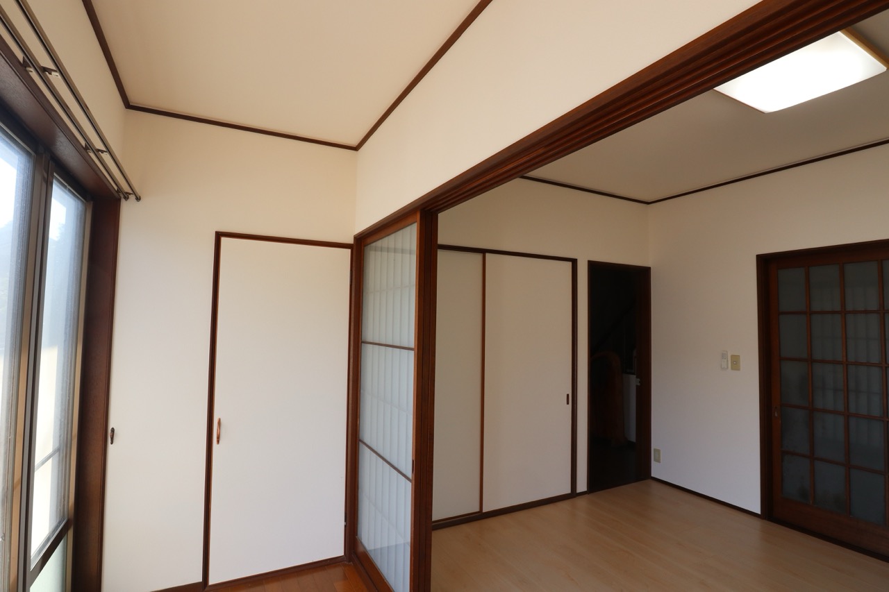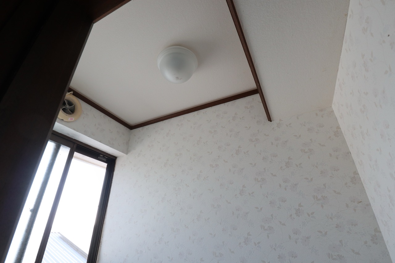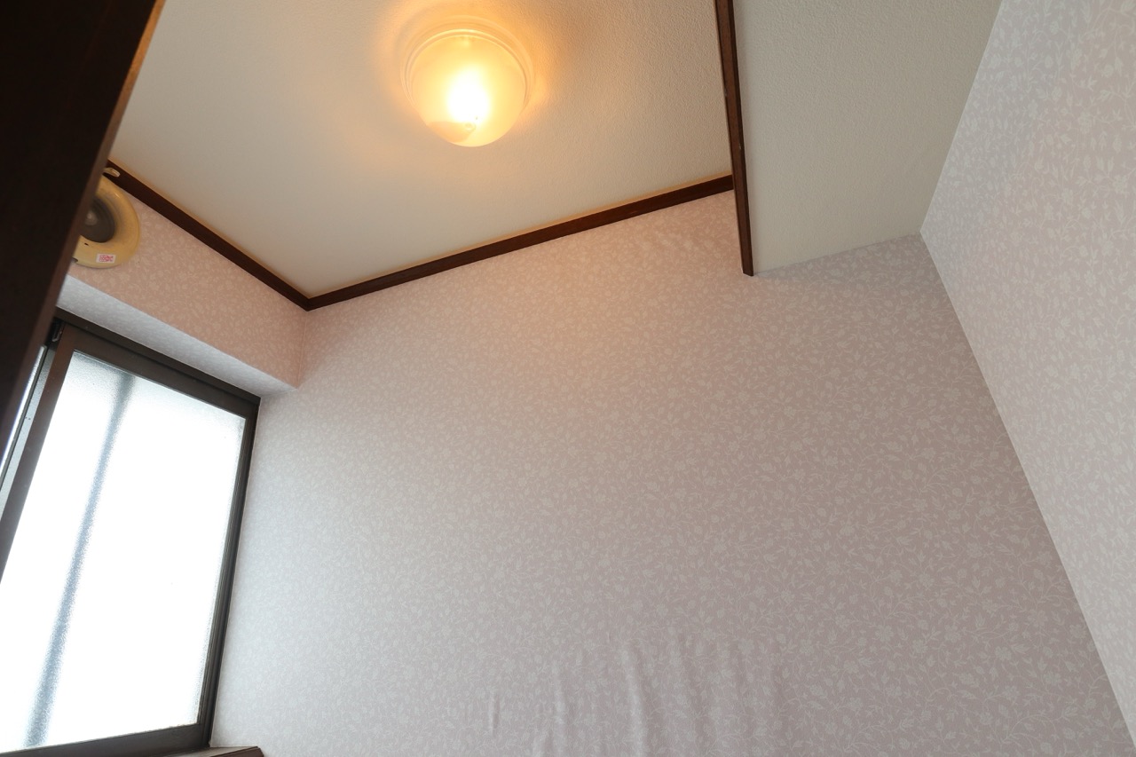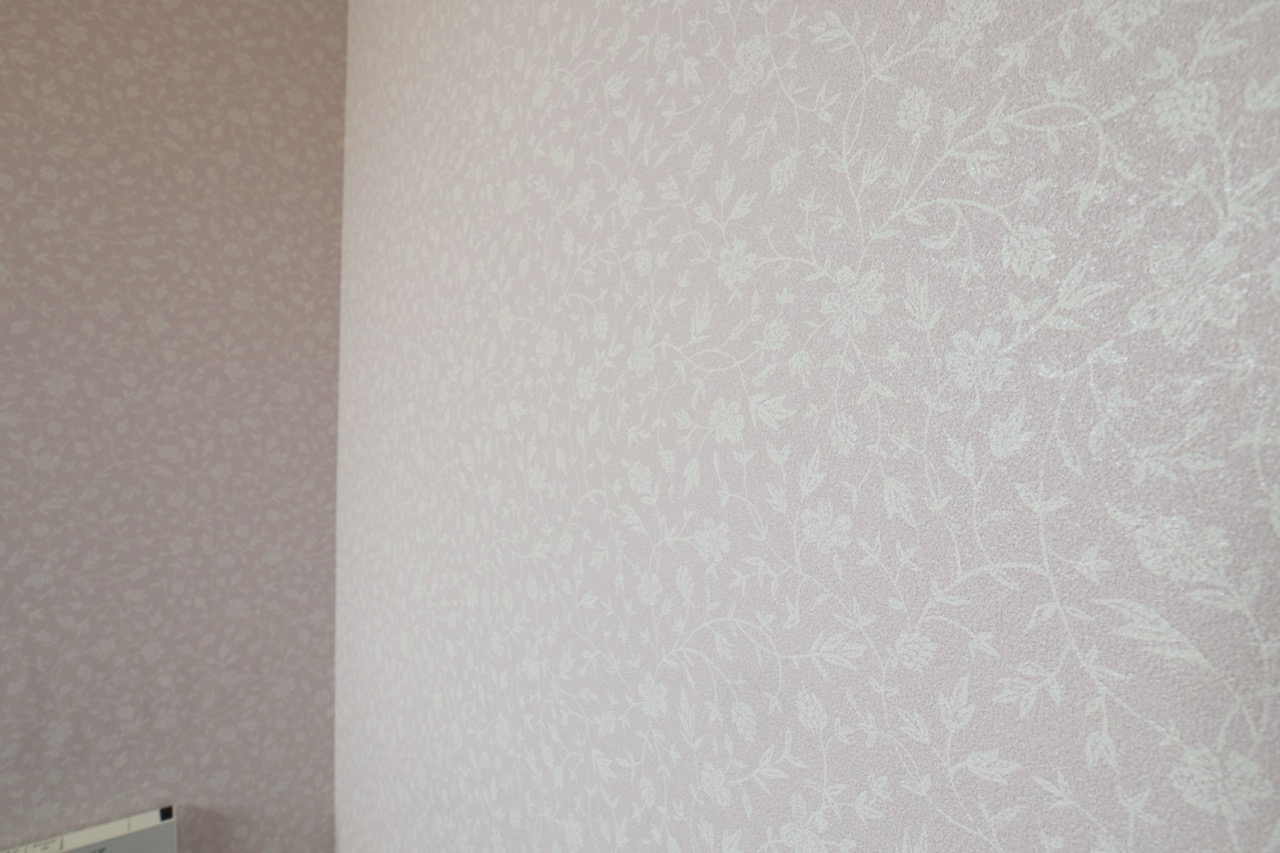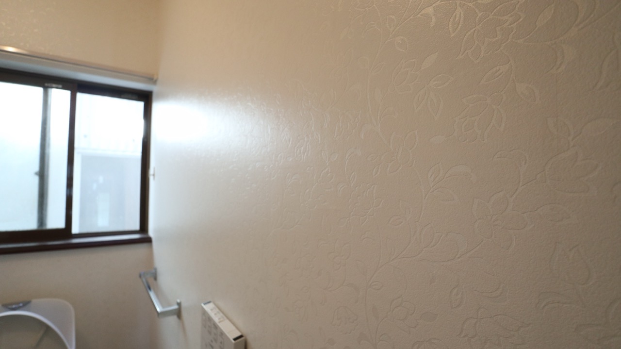 洋室は白無地クロスを、トイレにはそれぞれボタニカル柄のクロスをお選びいただきました。